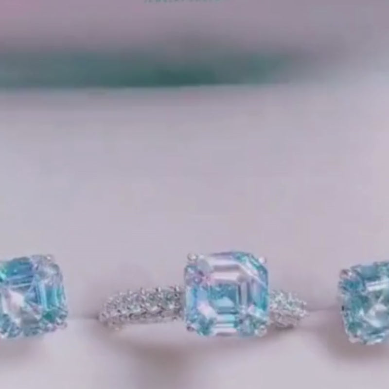 🌸HLJ Asscher Duo—sleek Asscher-cut studs and a coordinating ring, each shimmering with crisp, timeless sparkle in tarnish-resistant platinum-plated silver.