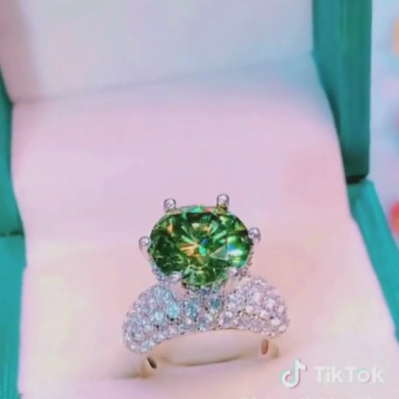 Emerald Bloom Moissanite Halo Ring – Regal Green Brilliance